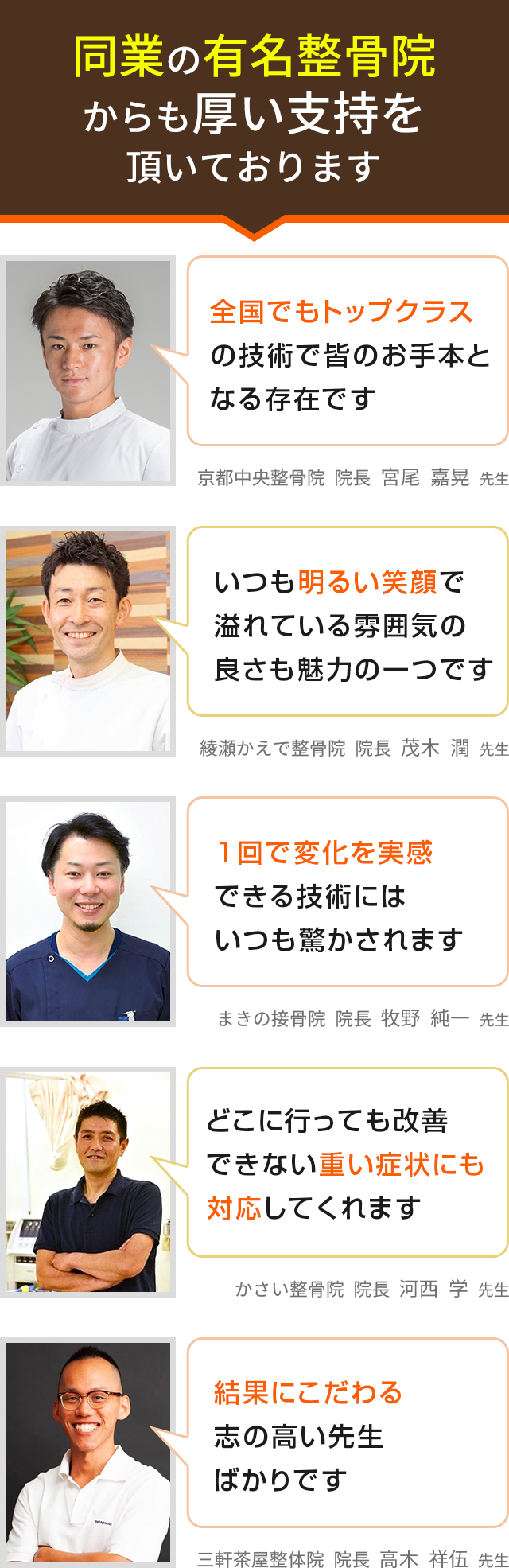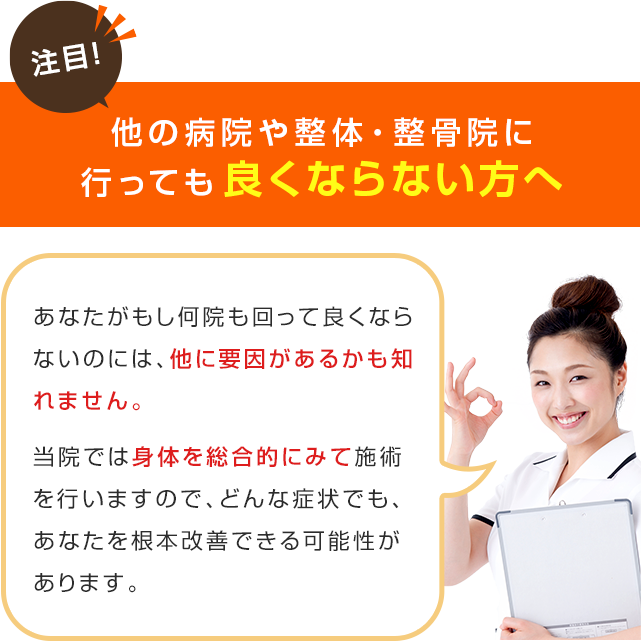 他の病院や整骨院・整体院に行っても良くならない方も、健康的な身体を取り戻されています。